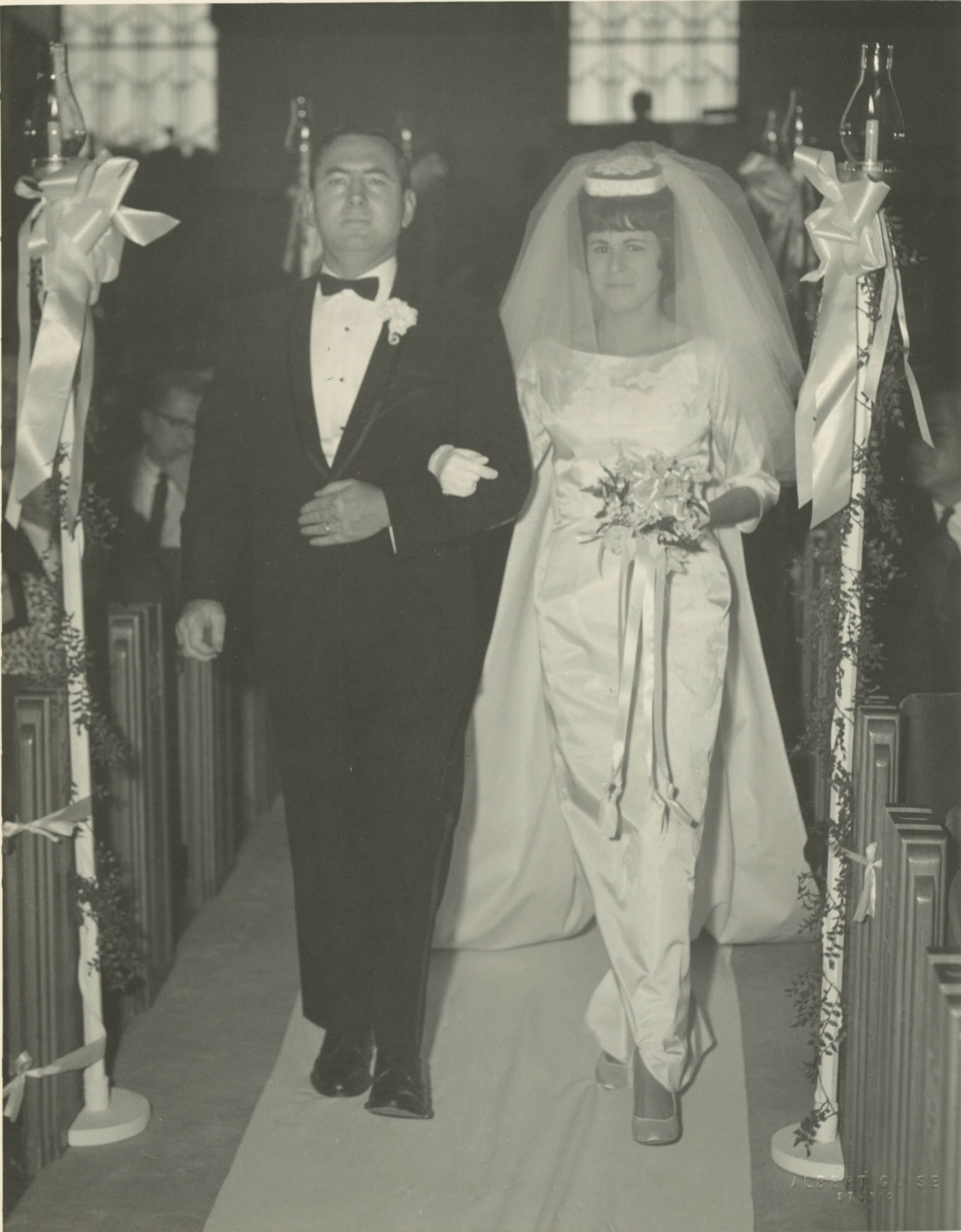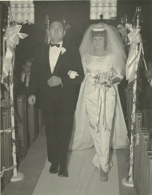UploadedVicki’s matron of honor Sandra Shenehon Mitchell walking with Alan’s best man, Uncle Victor Mazie.