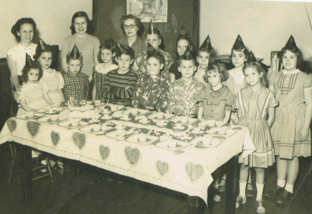 UploadedVicki’s seventh birthday party with her classmates at CID. Her mother Irene Bernstein and sister Linda, Lewis Moehlman, teacher, Jean Erickson, Mrs. Mrs. Monaghan, Kenny Travis, Warren Adolf, Jim Stuckenburg, Marianne Rouse, ?, Bruce Clement, Donna Bowman, Beth Petree, Kathy McGuigan, and Annelyle Turner.