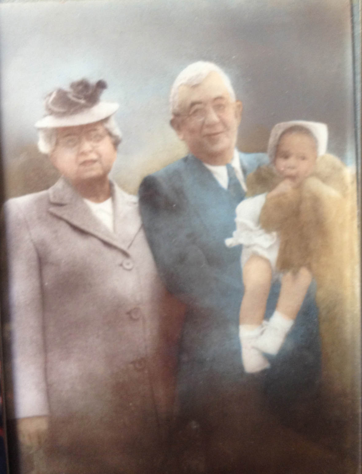 UploadedVicki‘s maternal grandparents of Suffolk, Virginia, Sadie and Joseph Stutson with baby Vicki with Grandma's fox stole, which Vicki still has today.