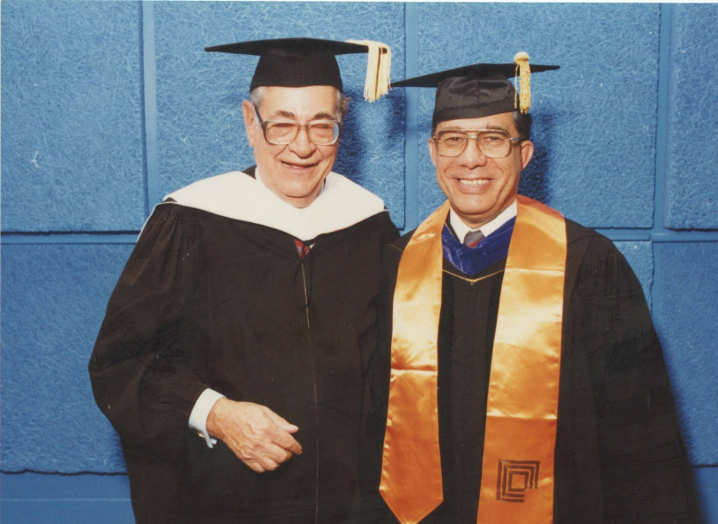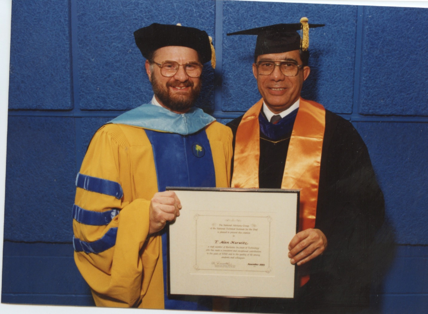 UploadedMervin Garretson receiving an honorary doctoral degree from RIT with Al Pimentel, chair of the NTID National Advisory Group.