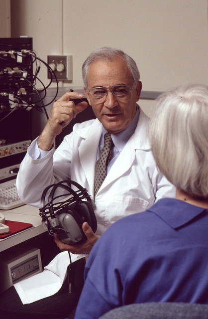 UploadedDr. Frisina in the lab. Courtesy of the RIT Archive Collections, Rochester Institute of Technology