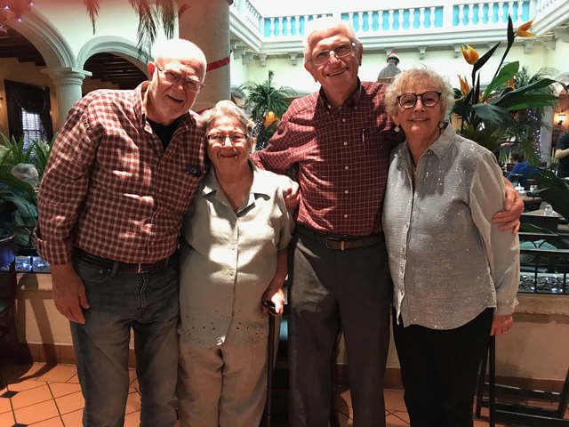 Residents of Sun City Grand Buddy and Bernice Singleton with Johnny Shickel and Gerry Francini at a farewell dinner party for the Singletons who were moving to Buda, Texas, after we bought their house, 2019.
