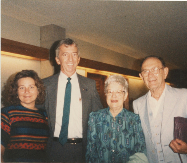 Mom and Dad Juliette and Harold with Gallaudet President I. King Jordan and his wife, Linda, at a reception at Johnson County Community College in Olathe, Kansas.