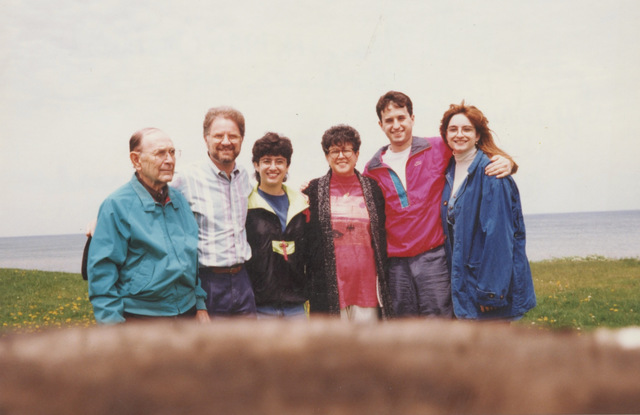 The Hurwitz family at Lake Ontario Beach. From left to right: My dad Harold, me, Stefi, Vicki, Bernard, and Stacy.