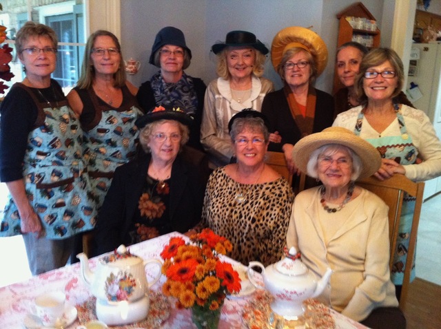 Vicki with her Afternoon Tea ladies at Melinda Padden's home: Gerri Frank, Vicki, Agnes Padden, Paula Jean Ammons, Melinda Padden, Diane Moore, Jane Norman, Rae Johnson, Brenda Sue Pickering, and Hazel Rinas.