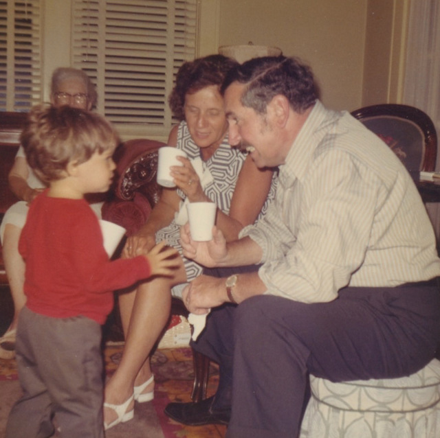 Bernard chatting with grandparents Jack and Irene Bernstein with great grandmother Sadie Stutson in the background.