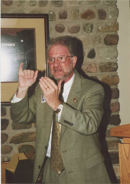 Delivering a speech.