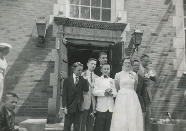 Graduates of CID in 1956: Karl Klenz, Tracy Alan, Steve Mirsky, Bill Jordan, Mary Helen Pearl, and Rad Arner.