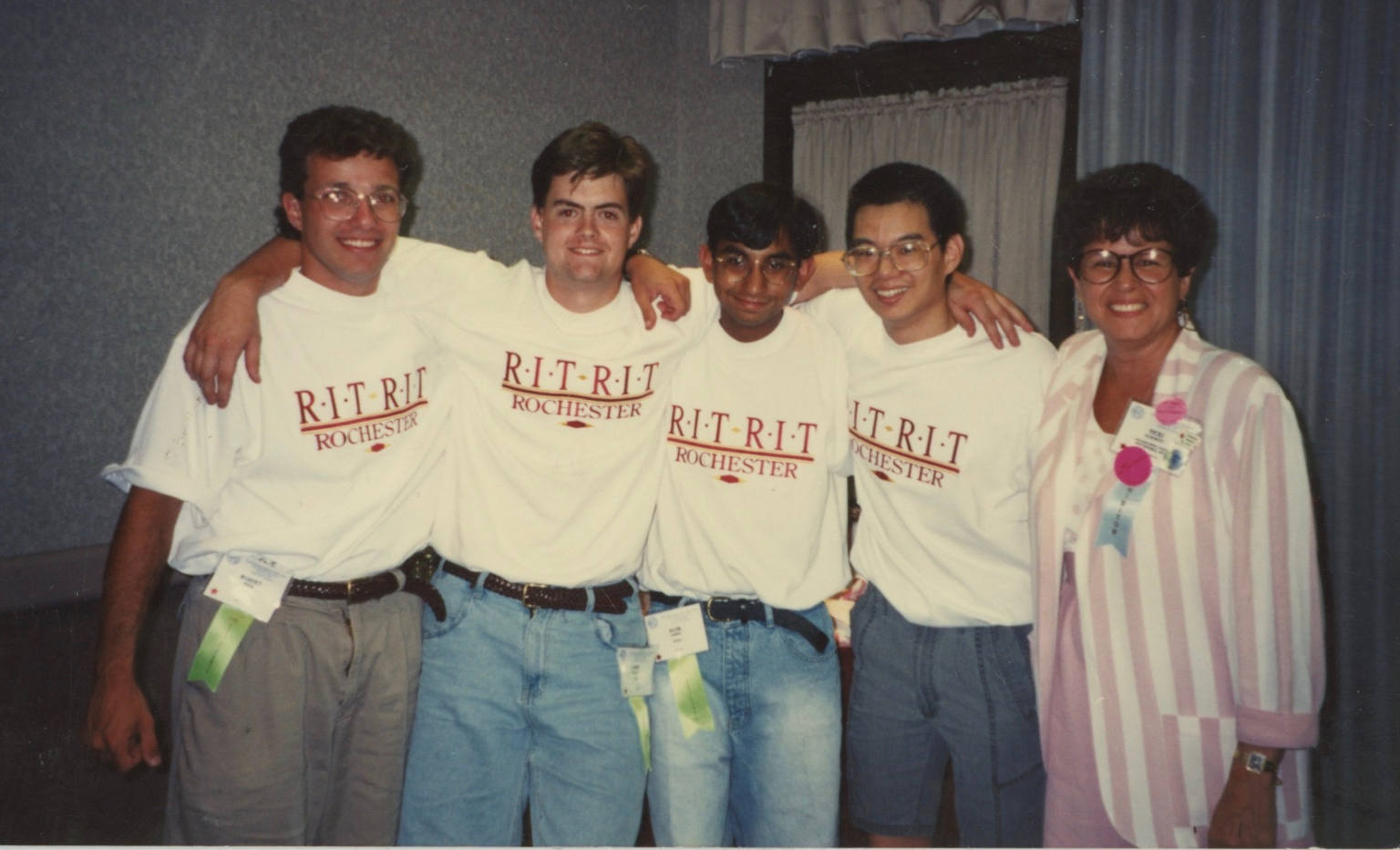UploadedVicki as coach of the victorious NTID College Bowl team at the NAD College Bowl competition. From left to right: Rob Rice, Jamie Munro, Alok Doshi, and William Tao.