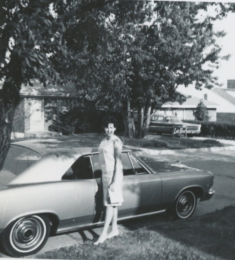 UploadedVicki in front of our brand new 1966 Malibu.